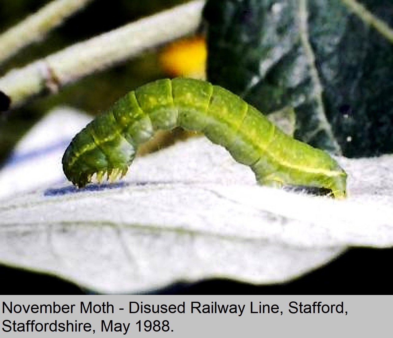Status: Resident in UK. Wing Span: 38mm to 44mm. Flight Period: October and November. Habitat: Found in bushy places with tree's and shrubs, including gardens, hedgerows, waste ground, parks, heath land, wood land, disused railway lines, motorway embankments. Comment: This moth is fairly common, and well distributed throughout the greater part of the UK. |