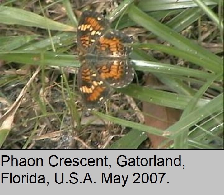 During one of our visits to Florida, we took a trip to Gatorland. This place is all about Alligators, and Crocodiles. This place has a very wild look and feel to it, and it was the one and only time that I saw a couple of Phaon Crescent. Another place we visited, on more than one occasion was the Florida Everglades. What a lovely wild place, we saw many Monarch butterflies, and a lot of other forms of wildlife. On one trip we saw a grounded swarm of very colourful looking large locust type bugs. If you head for the Everglades bye the way, take insect repellent spray, its full of mosquito's. |