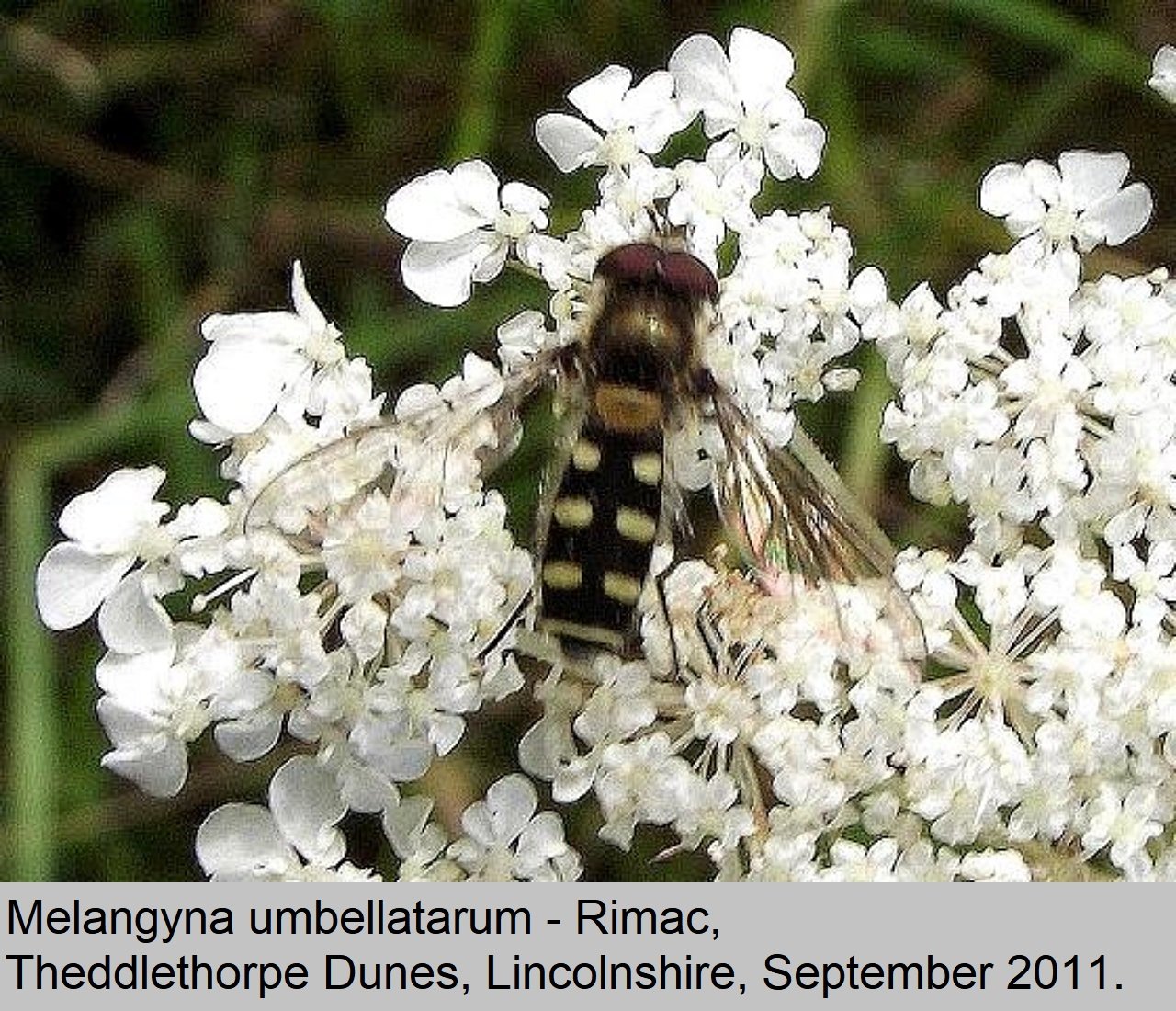 Eupeodes luniger | Eupeodes luniger | Eupeodes luniger | Melanyna umbellatarum | Melanyna umbellatarum |