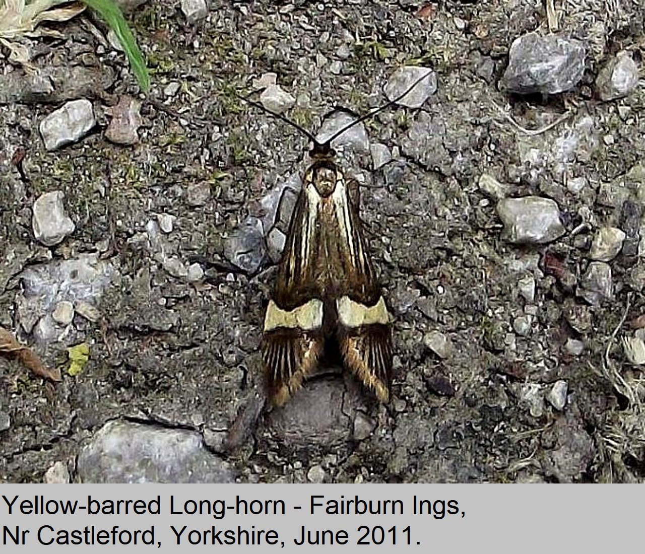 Status: Resident in UK. Wing Span: 16mm to 23mm. Flight Period: May and June. Habitat: Found in the damper parts of wooded areas. females have much shorter antennae. Comment: Fairly common and throughout England and Wales, as far north as Cumbria. |