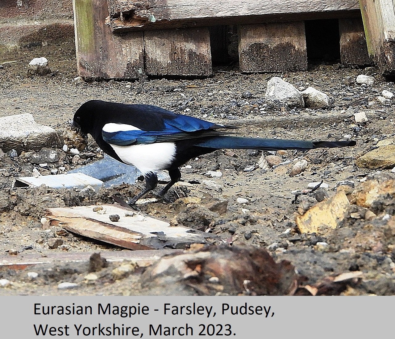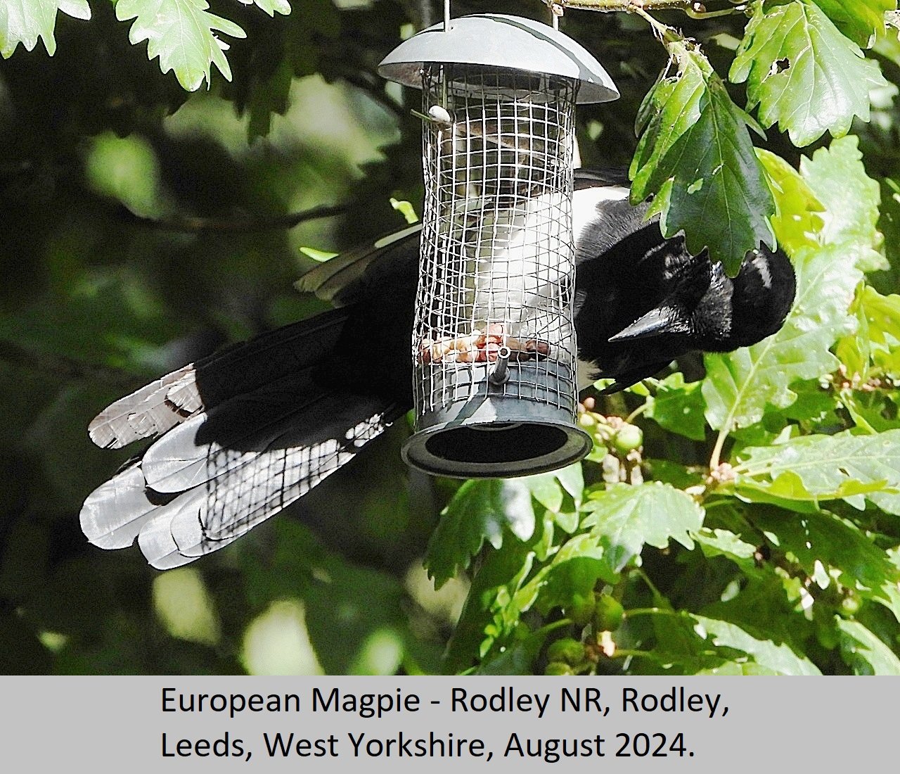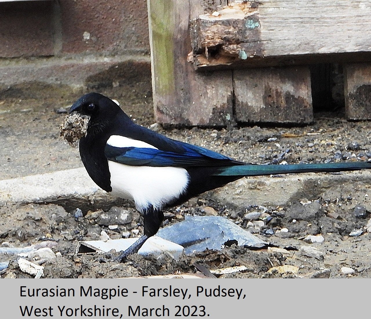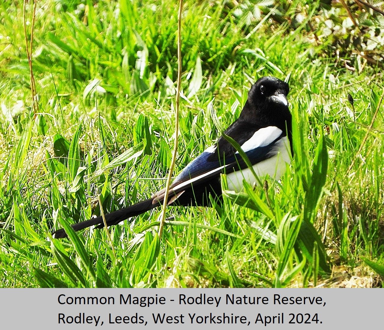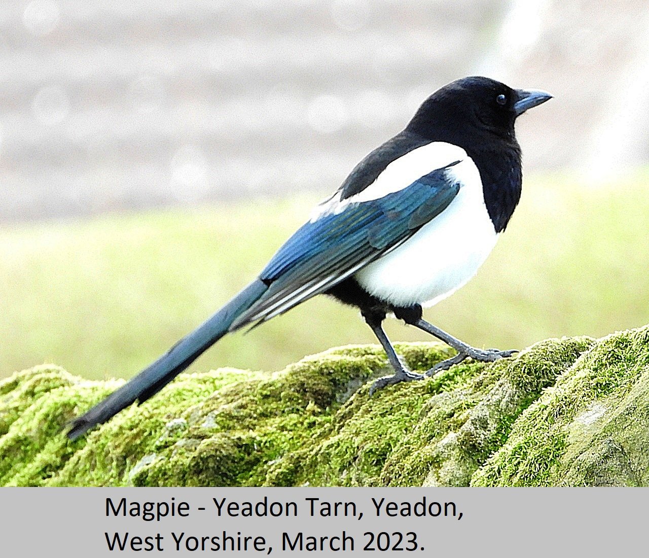 Eurasian Magpie: UK Status: Resident. Habitat: This is found is found in many habitat types including, gardens, parks, tall hedgerows, woods and heaths. Breeding: This bird seems to require fairly tall dense thorny, or prickly shrubs to nest in. They build a nest of sticks and twigs, with a domed roof over the top. There is an entrance hole on one side of the nest, Eggs number five to eight per clutch, and are pale blue heavily streaked and mottled with darker brown. Comment: This beautiful largish black and white bird, with it's bluish purple iridescent sheen is fairly common throughout the British Isles. |