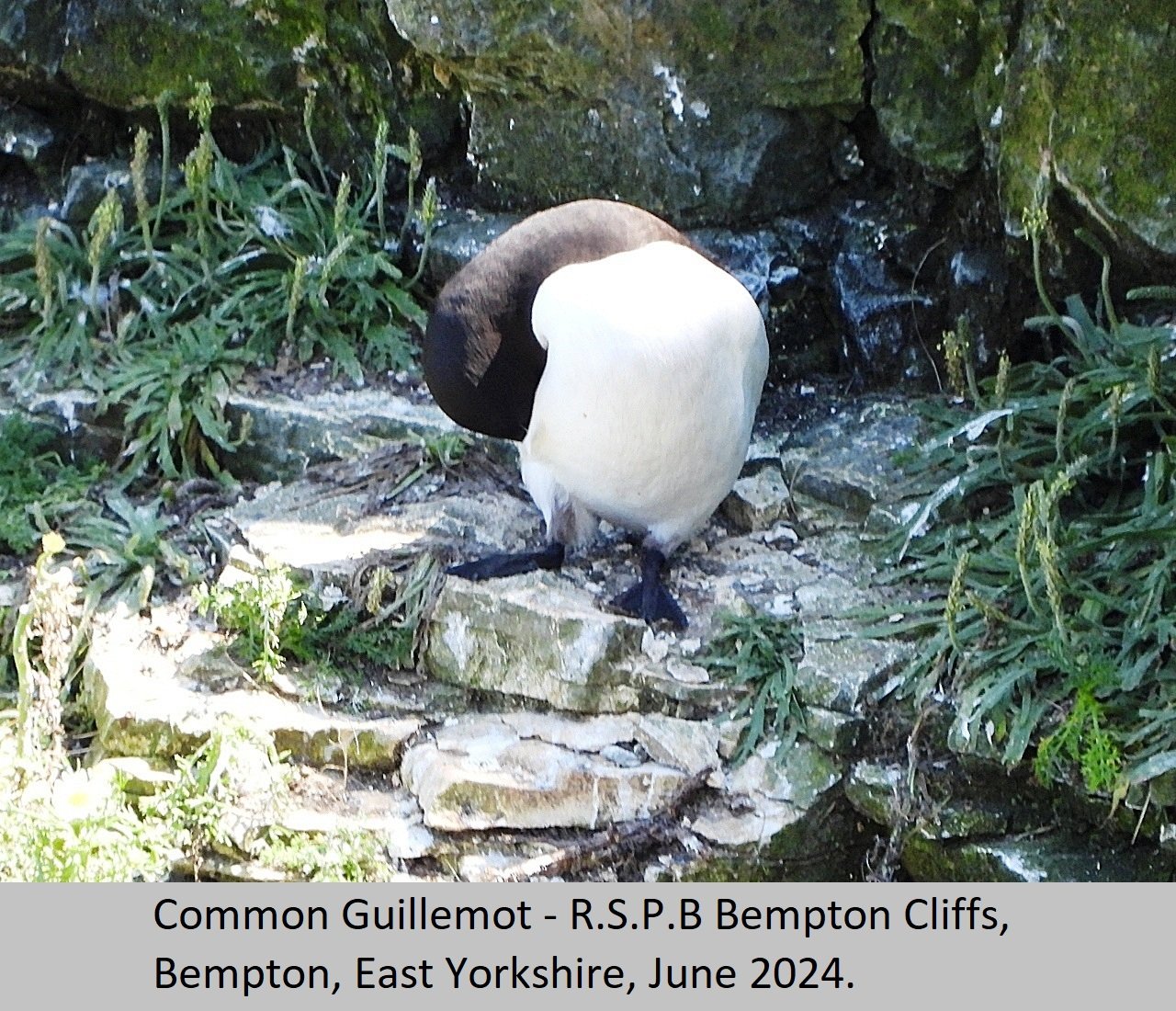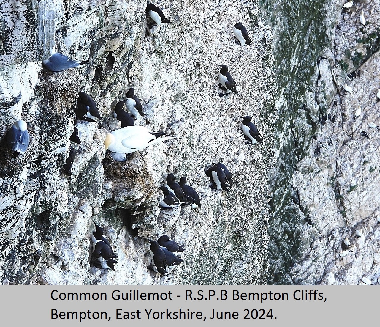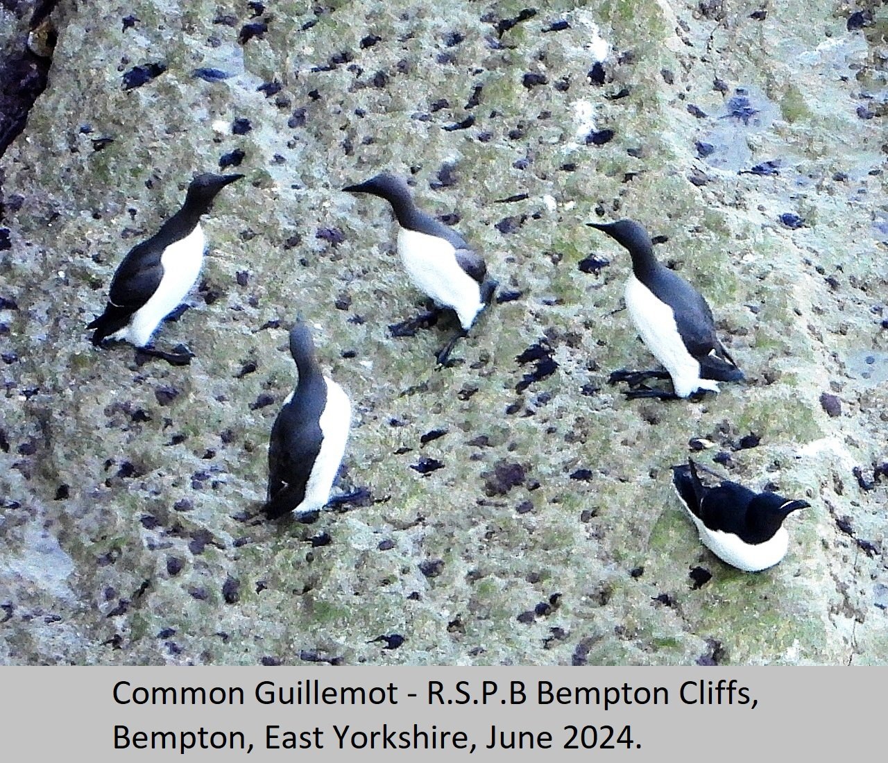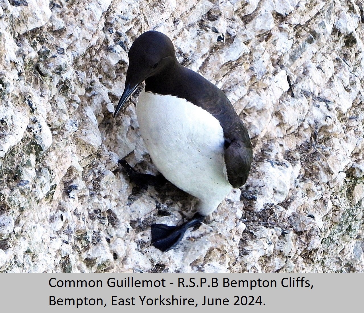 Common Guillemot UK Status: Only coming ashore to breed, Guillemots can be seen in the sea off the east and south coast of England. However when breeding they can be seen on many cliff faces around the UK. Habitat: This sea faring bird that only comes on land to breed is a cliff dweller when breeding. Otherwise it spends most of it's time on the ocean when not breeding. Breeding: Nesting pairs a very closely spaced, and often have bodily contact with the nearest other pair/s. The single large egg is laid on the bare rock of cliff ledges and outcrops. Eggs vary in colour fromm off white through to buff, and can be pale turquoise in colour. There are darker marks on the eggs, and can vary from just a few to many markings. There is just the single brood, single egg each year. Comment: This bird is very similar looking to the Common Guillemot. Razorbills have deep blunt looking beaks, where as the Guillemot has a longer, thinner, and more pointed beak. Common Guillemot is also known as the Common Murre, or Foolish Guillemot. Conservation Status: Not Assessed |